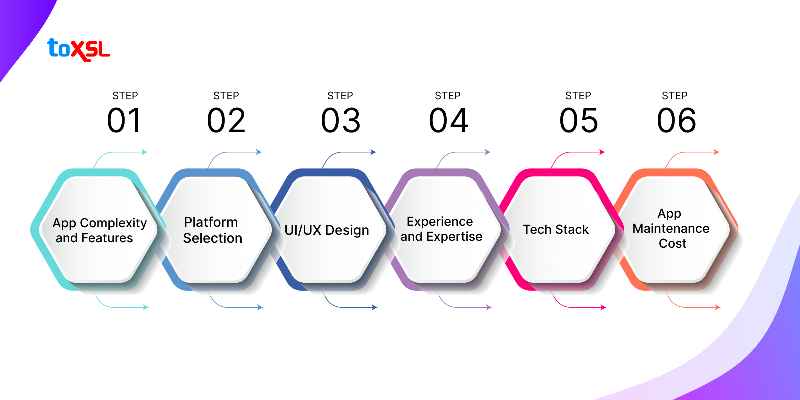 Several factors impact app development costs in Australia, including app type, number of features, design complexity, platform (Android, iOS, or both), and developer experience. Custom functionality, backend development, and third-party integrations also raise the price. ToXSL Technologies ensures cost-effective solutions based on your project scope and business goals.